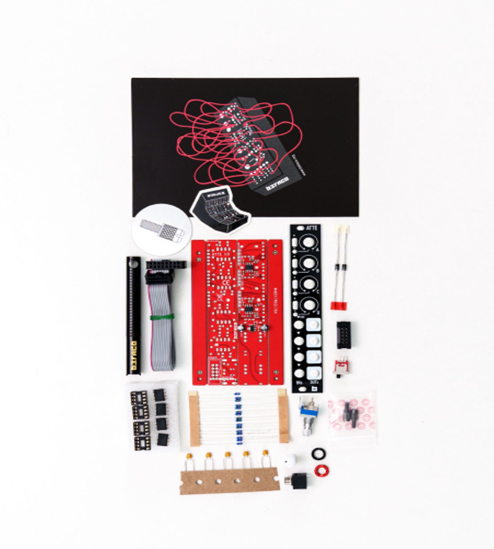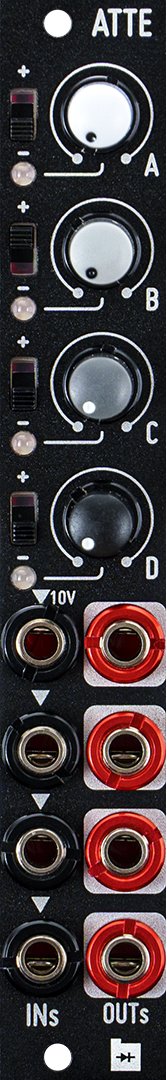 Scale your audio or CV sources and route them to various destinations with this versatile utility. It consists of four identical unity gain amplifiers. Each amplifier can multiply an incoming signal by values ranging from 0 to 1 (for attenuation) or from 0 to -1 (for inverting attenuation). The input of each channel is normalled to the input of the next channel, allowing for easy signal routing from one input to the subsequent ones.