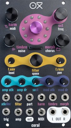 8 full voice polyphonic, multipart, multi engine synthesizer module with sample playback, sweet reverb and chorus.