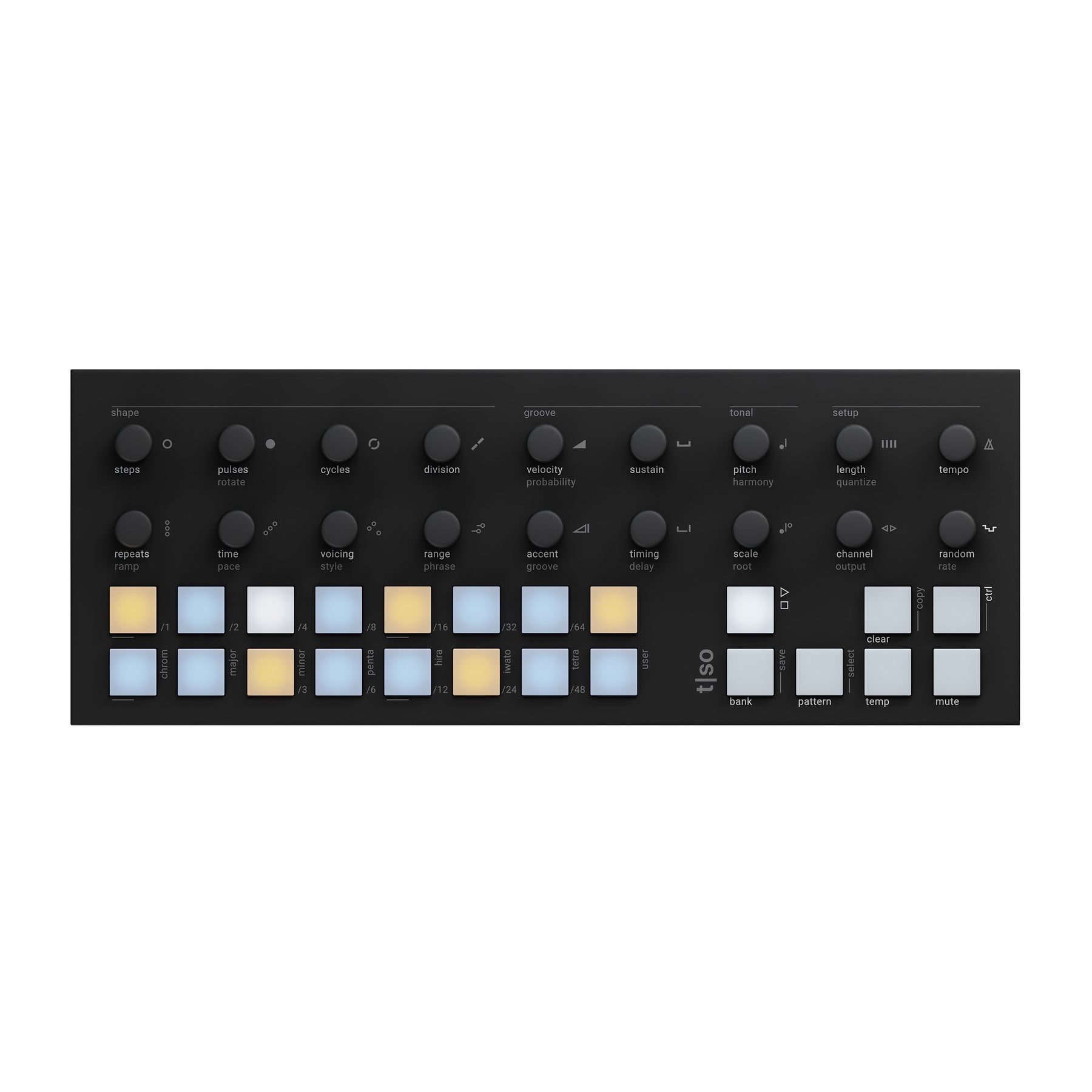 Sculpt the timing, tonality and overall structure of your music in the same intuitive way you would a parameter on a synthesizer: By the twist of a knob. The T1 lets you dial in any rhythm in a manner of seconds with euclidean rhythms.